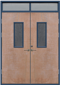 鋼框木扇防火門-雙開帶亮窗